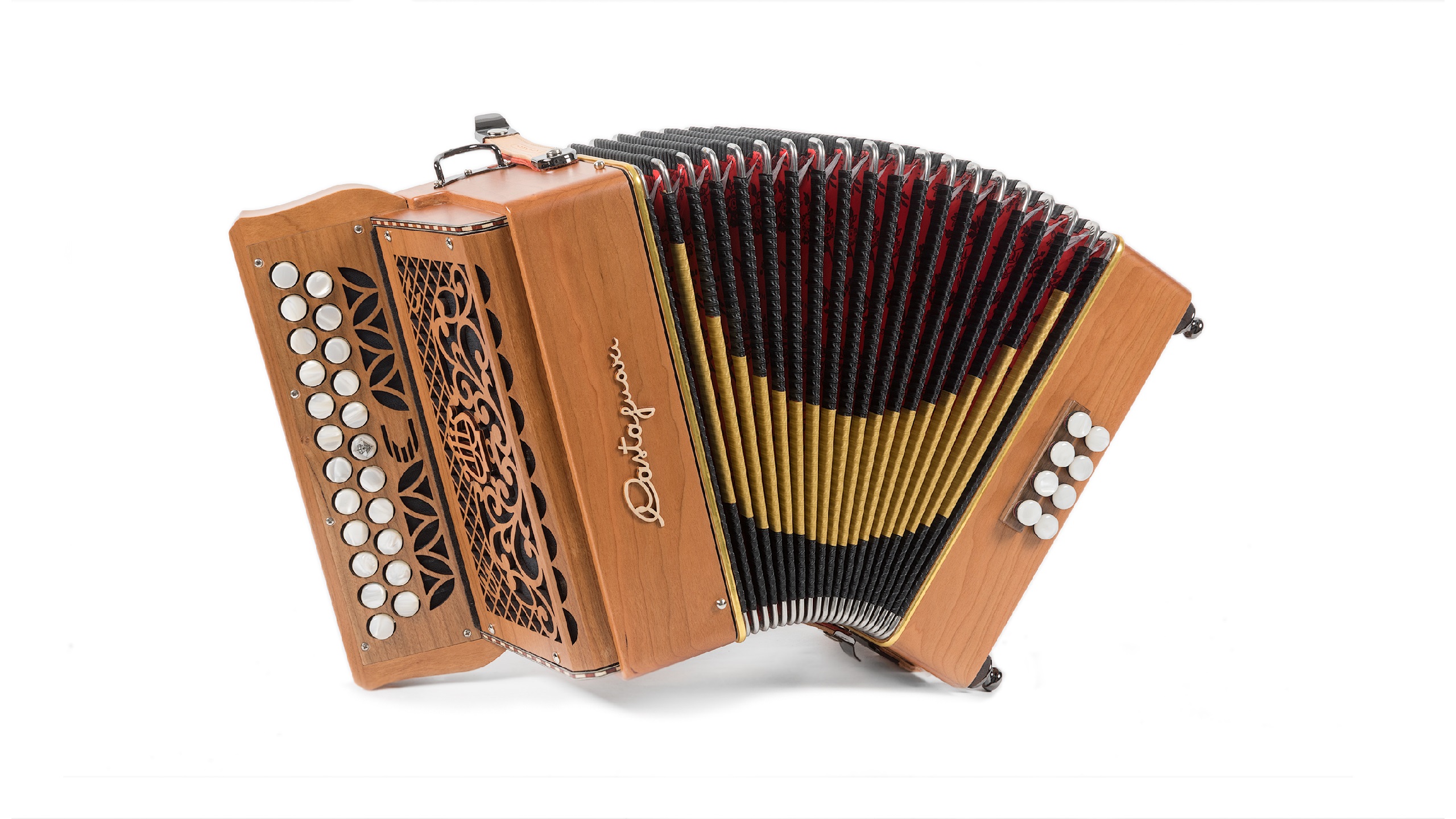 Dinn II is a 2 voices, 23 buttons flat keyboard, it has a very compact format and it's equipped with high-range quality sound reeds (- Tipo a mano).